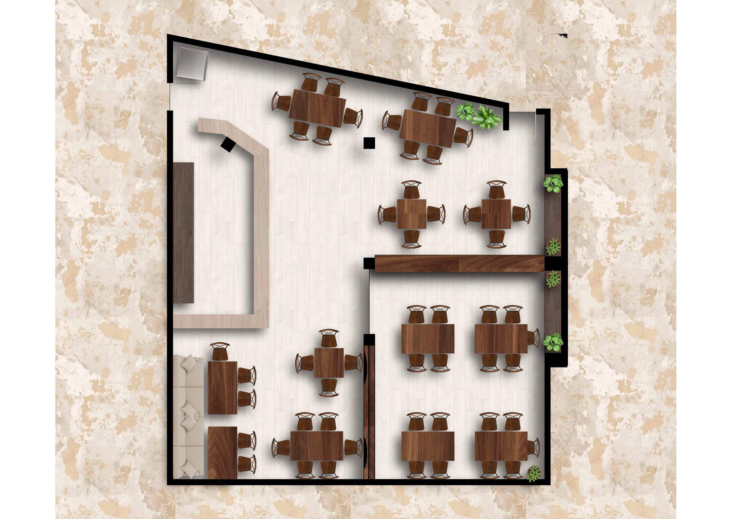 Die maßgeschneiderte Kassensoftware ecash bietet nicht nur eine effiziente Abwicklung von Transaktionen in der Gastronomie, sondern auch eine einzigartige Möglichkeit, das Ambiente jedes einzelnen Restaurants oder Cafés in einer hochauflösenden Visualisierung darzustellen.