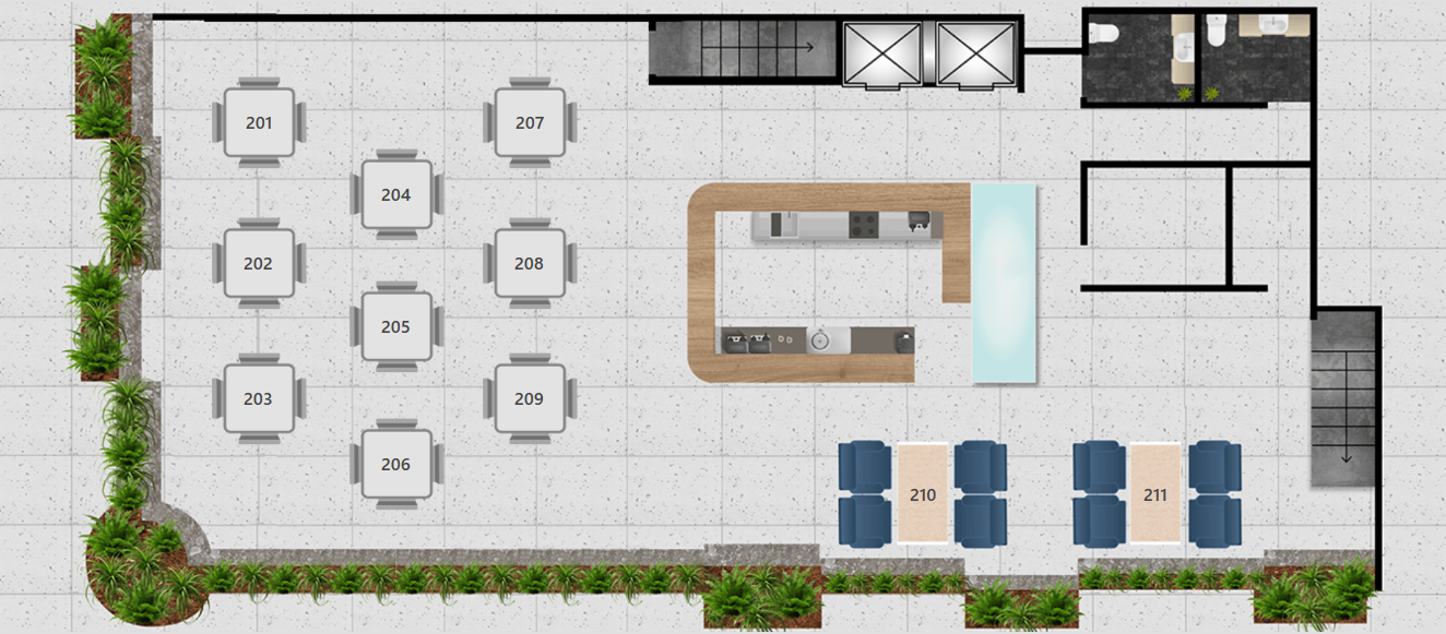 Die grafischen Tischpläne können Sie selbst erstellen. Ziehen Sie die Tische auf den Plan und platzieren Sie verschiedene Erkennungspunkte. So sehen Ihre Mitarbeiter sofort, um welchen Tisch es sich handelt.